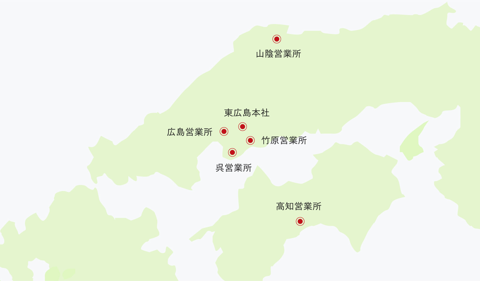 赤防株式会社では、広島県広島市を中心に福山市、岡山県、山口県、鳥取県、島根県、愛媛県、香川県、高知県、徳島県といった中四国エリアや九州エリアにおいて幅広く対応しています。